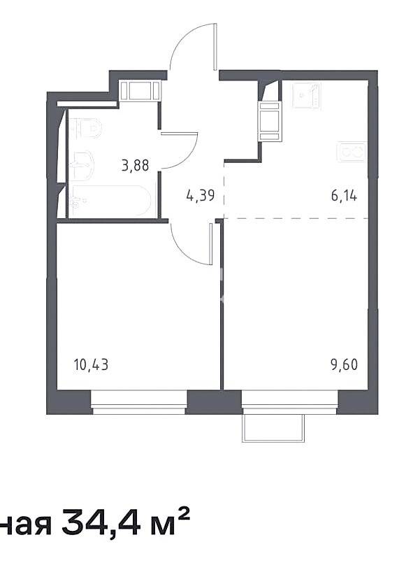 Это светлая, уютная и тёплая квартира общей площадью 34,44 м². Окна выходят во двор, и из них виден лес.